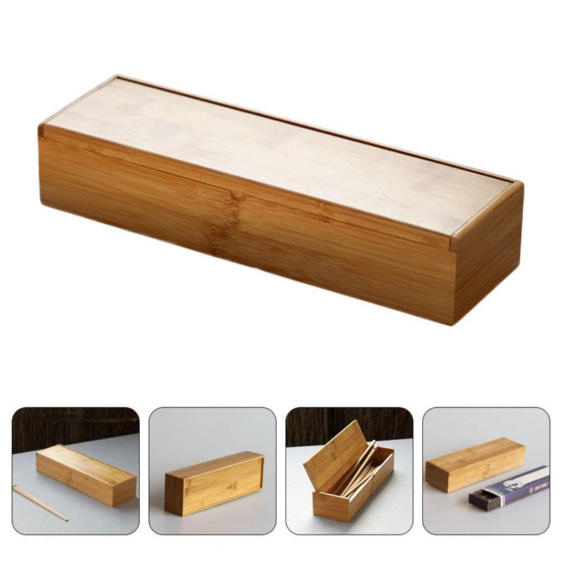 DEARMAMY Flatware Wood Tray with Lid Kitchen Cutlery Utensil Drawer Organizer Bamboo Chopsticks Box Case Silverware Countertop Storage Container for Tableware | DEARMAMY