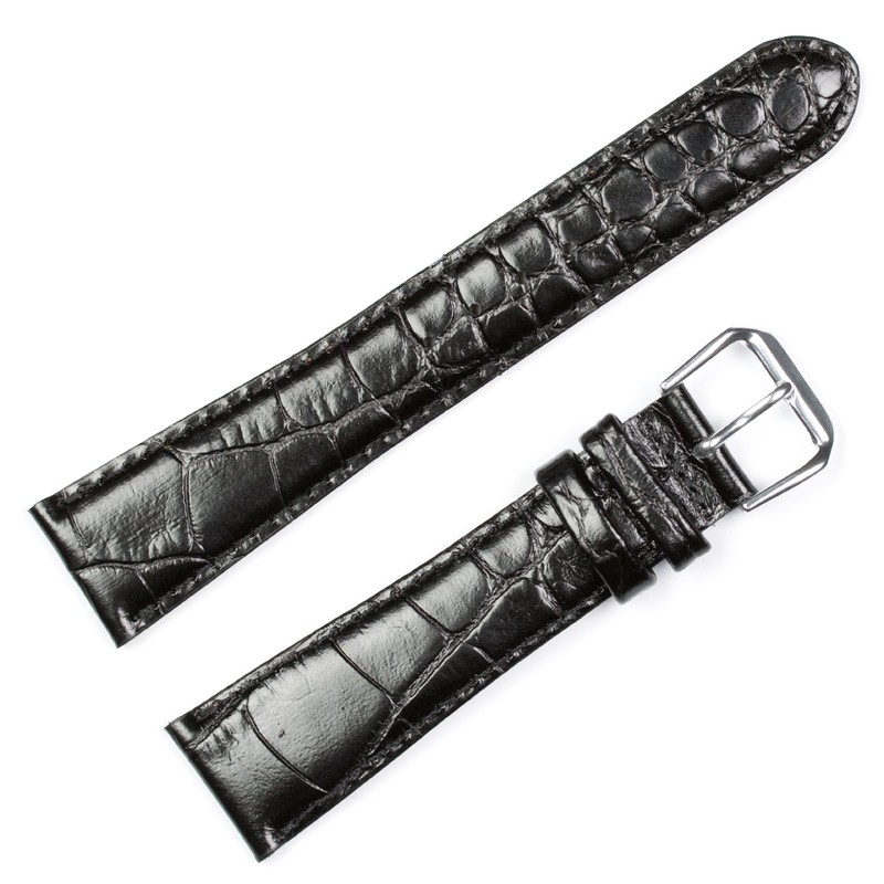 deBeer Crocodile Grain Watch Band - Black 12mm Watch Strap