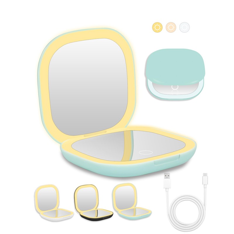 - 3 Color and 40 Leds: This small mirror provides 3 color light modes: white light, warm light and natural light to simulate makeup looks under different lighting. 40 Pcs bright LED lights that can give you great assistance for making up. Long press the dimming touch to switch light colors