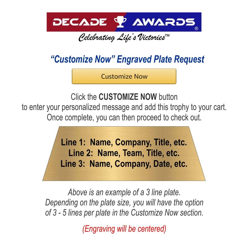 - TROPHY WILL ARRIVE WITH THE ENGRAVING PLATE ATTACHED by ordering through this CUSTOMIZE NOW listing