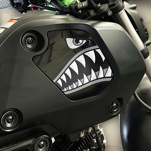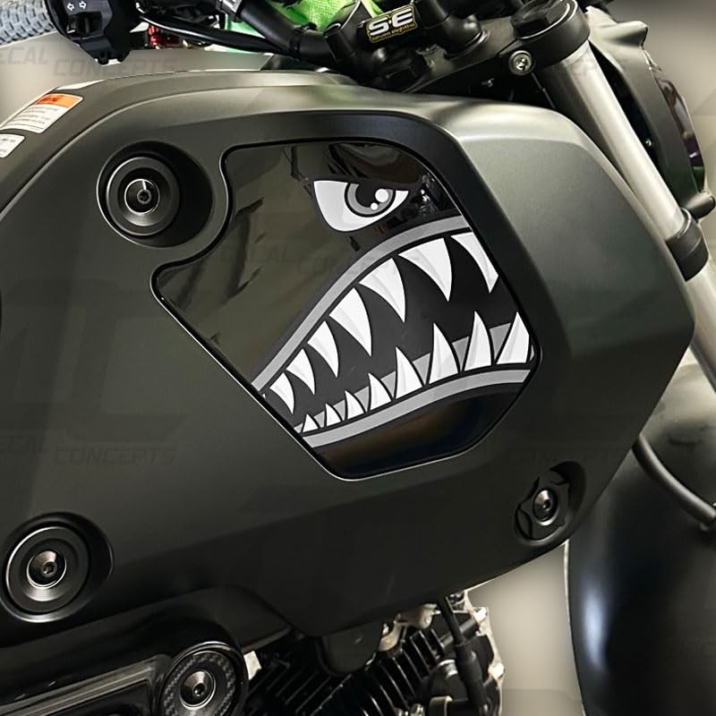 Decal Concepts Shark Mouth Side Body Fairing Accent Decal Graphic Kit for Honda Grom (2022-2024) (Grayscale)