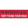 DECAL FUN198 THE PROCTOLOGIST CALLED...THEY FOUND YOUR HEAD 3" X 10" Bumper Stic