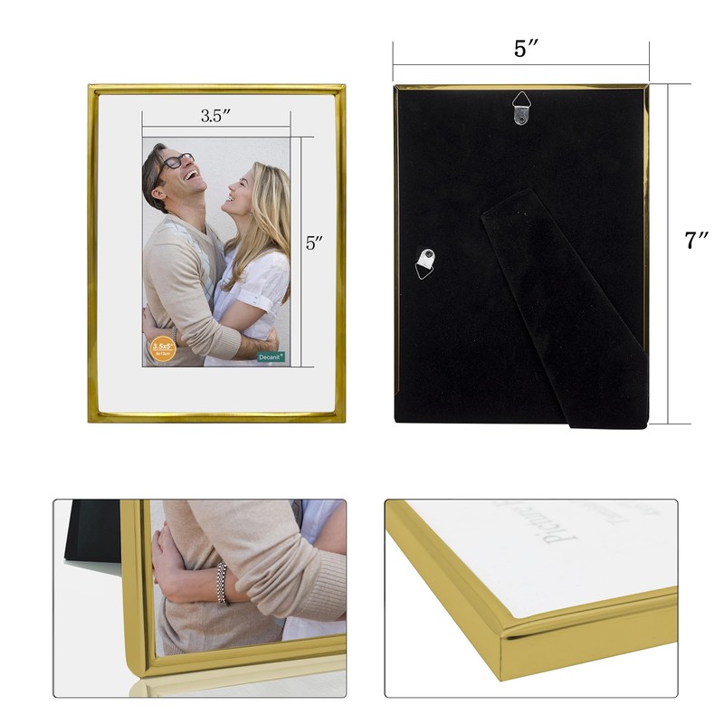DECANIT 5x7 Picture Frame Metal,Thin Profile Photo Frame 5 by 7 Inch, Display for Wall Mounting or Tabletop Pack of 2,Gold