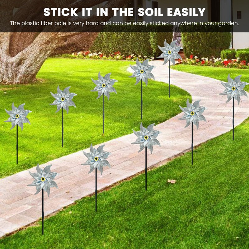 - 【Widely Used】: You can decorate your yard, lawn, or garden with these pinwheels to scare away birds and protect your balcony, garden, tomatoes, potatoes, peppers, and other crops.
