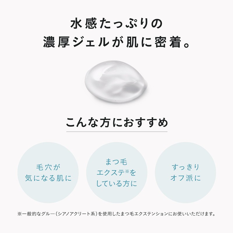 - 【摩擦レス設計】厚み感のある保湿剤とのび広がりのよい保湿剤の配合で、なじませている間もぷるぷるのジェル膜をキープ。肌を直接こすらずに、しっかりメークや汚れをからめ取ります。