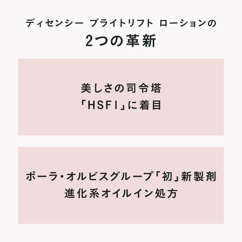 - 【ポーラ・オルビスグループ初の新技術を搭載】新技術の搭載により、うるおいを閉じ込めながらもみずみずしさや明るさ、透明感・ツヤ感等の即時的な体感をもたらします。