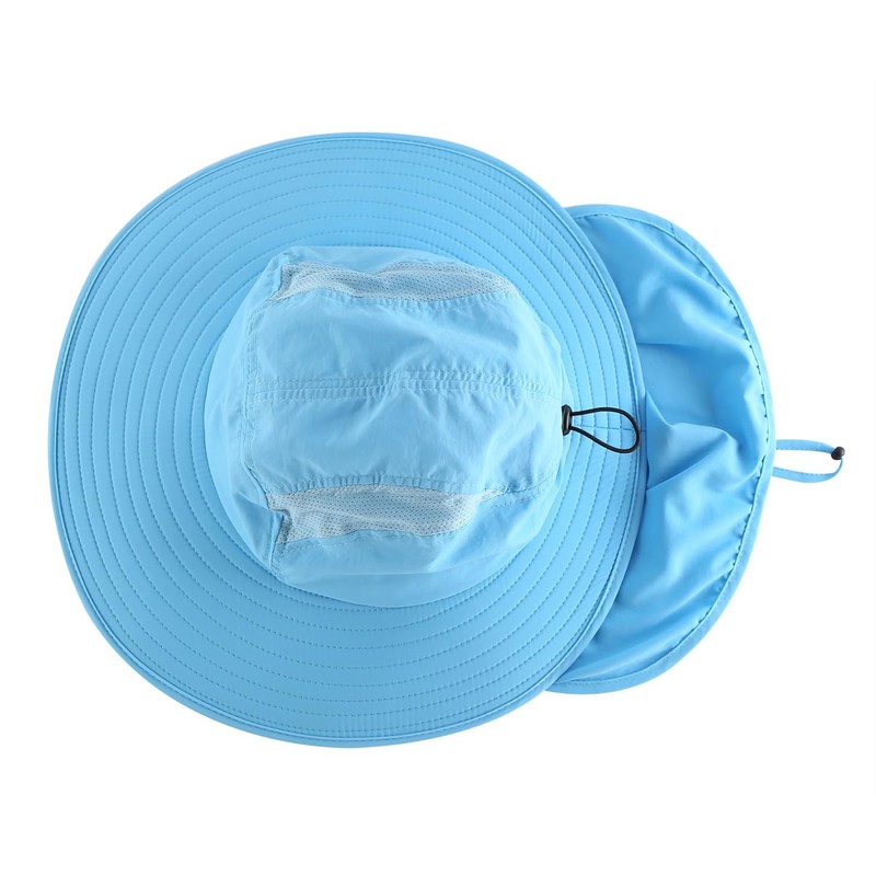 Decentron Adult UPF 50+ Sun Protection Cap Wide Brim Fishing Hat with Neck Flap (Aqua Blue)