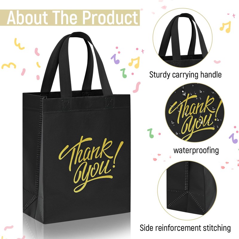 - 【Quality Material】These thank you bags for party favors are constructed from durable non-woven fabric, which is strong and tear-resistant. They can handle significant weight. Reusable and long-lasting, these gift bags reusable provide consistent performance for all your gifting needs.