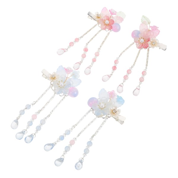DECHOUS 2 Pairs Chinese Hair Clips with Retro Flower Tassel Design Elegant Hanfu Barrettes for Comfortable and Secure Fit for Cosplay Festivals and Traditional Costume Accessories