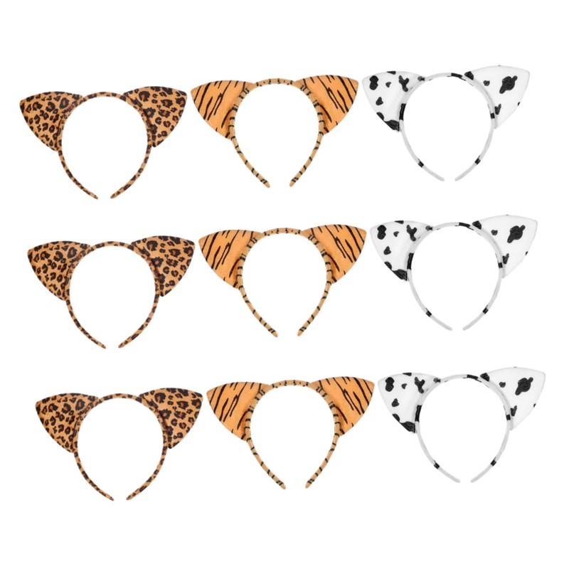 DECHOUS 9pcs Leopard Print Cat Ear Headbands Plush Animal Ears Hair Hoops Lightweight Portable for Women Spa Party Cosplay Daily Wear Travel Friendly Accessory