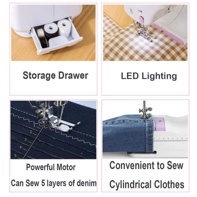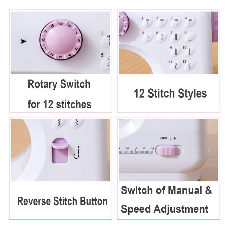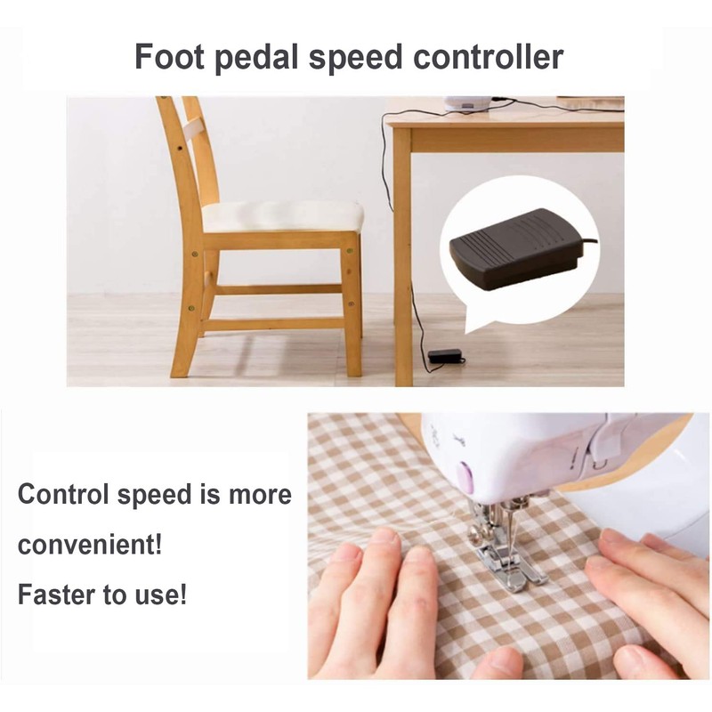- 【Dual Power & Double Switches】2 power supply modes with AC adapter and 4 AA batteries(not included). Our household sewing machine is with pedal switch and push button switch, designed for new sewing machine beginner. Easy to start the sewing jobs.