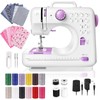 Dechow Sewing Machine for Beginners, Electric Mini Portable, 12 Built-in Stitches with Reverse Sewing, 2 Speeds Double Thread with Foot Pedal, Floral Cotton Fabric and Sewing Threads Set(Purple)