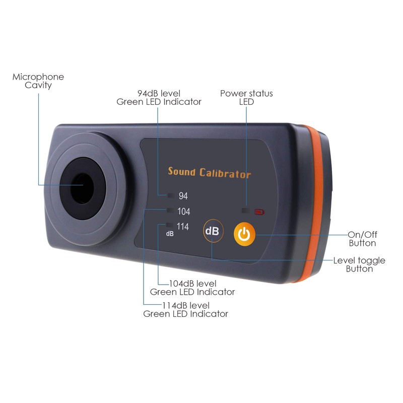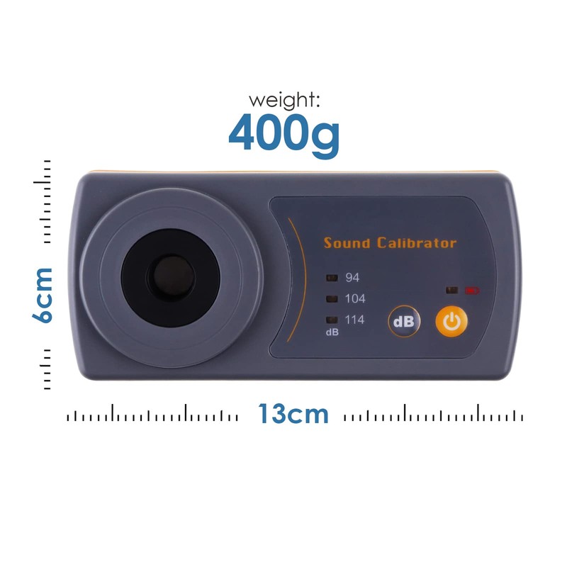 - Sound Level Calibrator With calibration levels at 94dB, 104dB, and 114dB, paired with a calibration frequency of 1000Hz