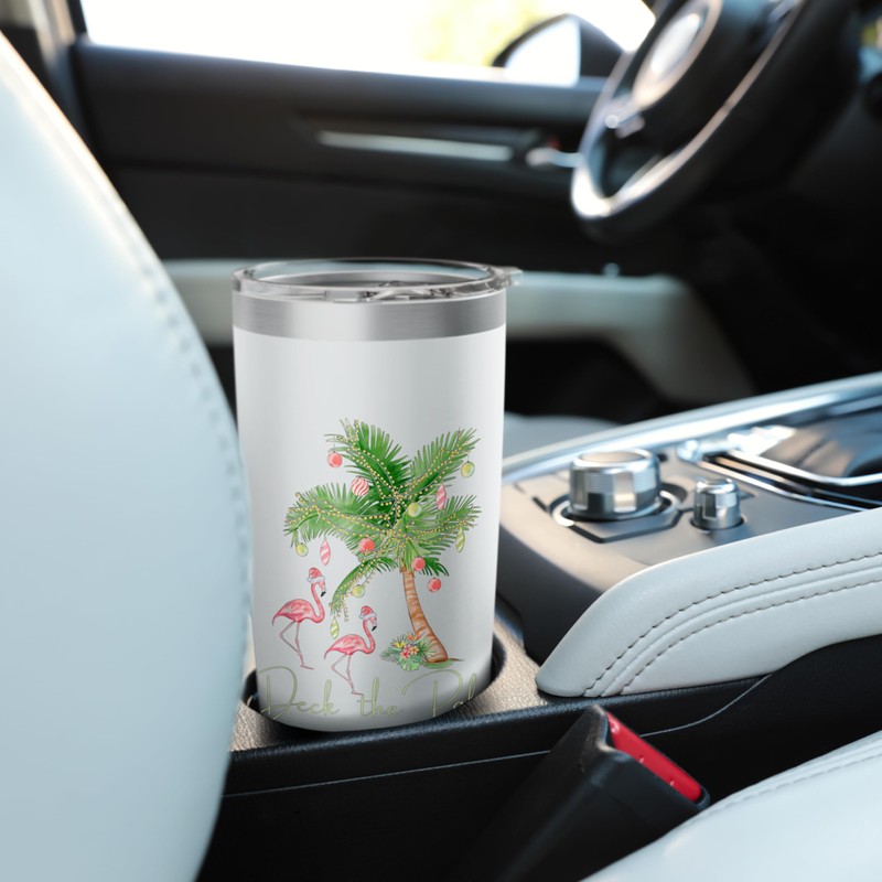 Deck the Palms Flamingo Funny Christmas Lights Palm Tree Stainless Steel Insulated Tumbler