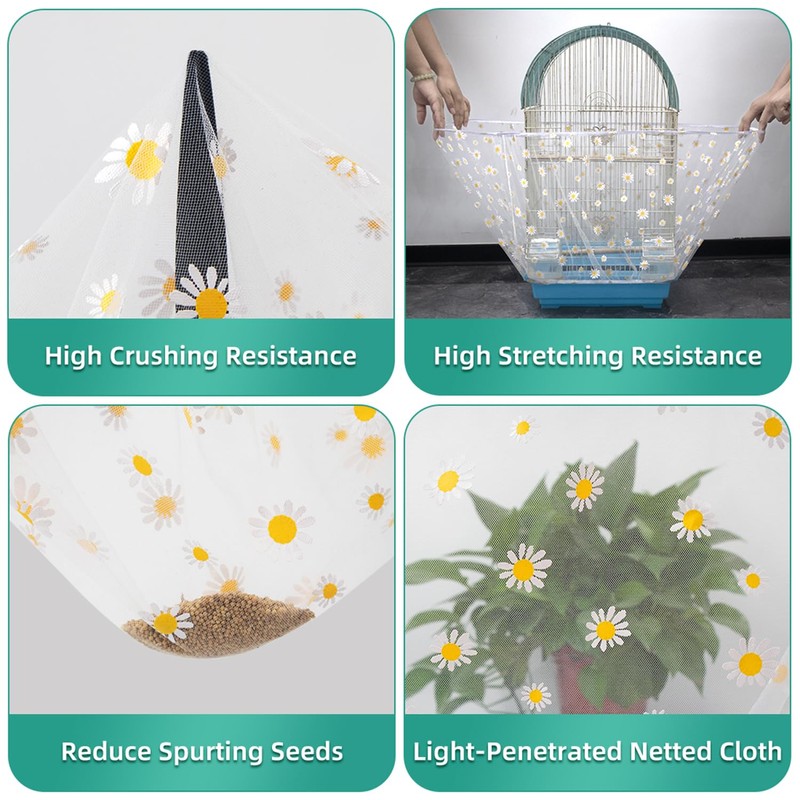 - 【Keep Floor Clean】 Nylon mesh seed catcher fits securely around your bird's cage to prevent messy seeds and floating feathers from scattering on the floor. Keeping your home and floor clean.