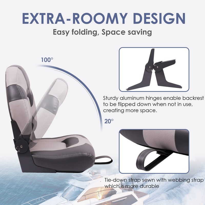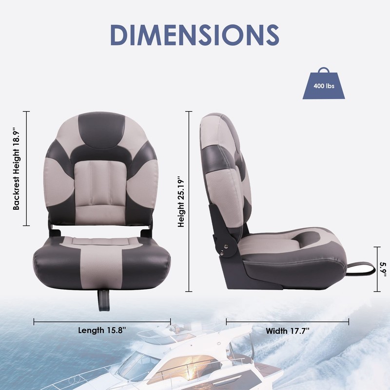 - ERGONOMIC FEATURES - According to the ergonomic design, our boat seat will reduce your back and vertebrae pain when you are sitting for a long time. The high backrest perfectly fits to the curve of human spine can give you strong support and help you release back pressure.