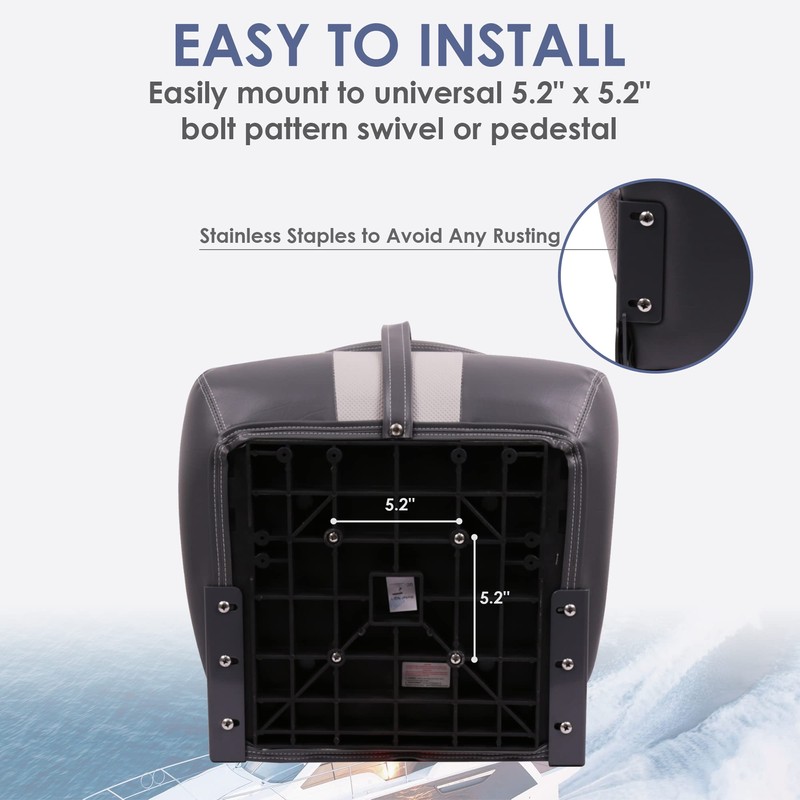 - EASY TO INSTALL - Included 4 stainless steel mounting bolts/screws, easily mount to universal 5.2’’ x 5.2 ’’ bolt pattern swivel or pedestal.(No swivel/pedestal included)