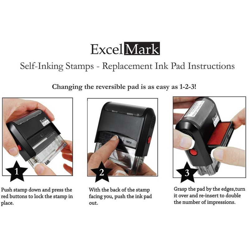 - Ink pads are replaceable and re-inkable with ExcelMark self-inking ink