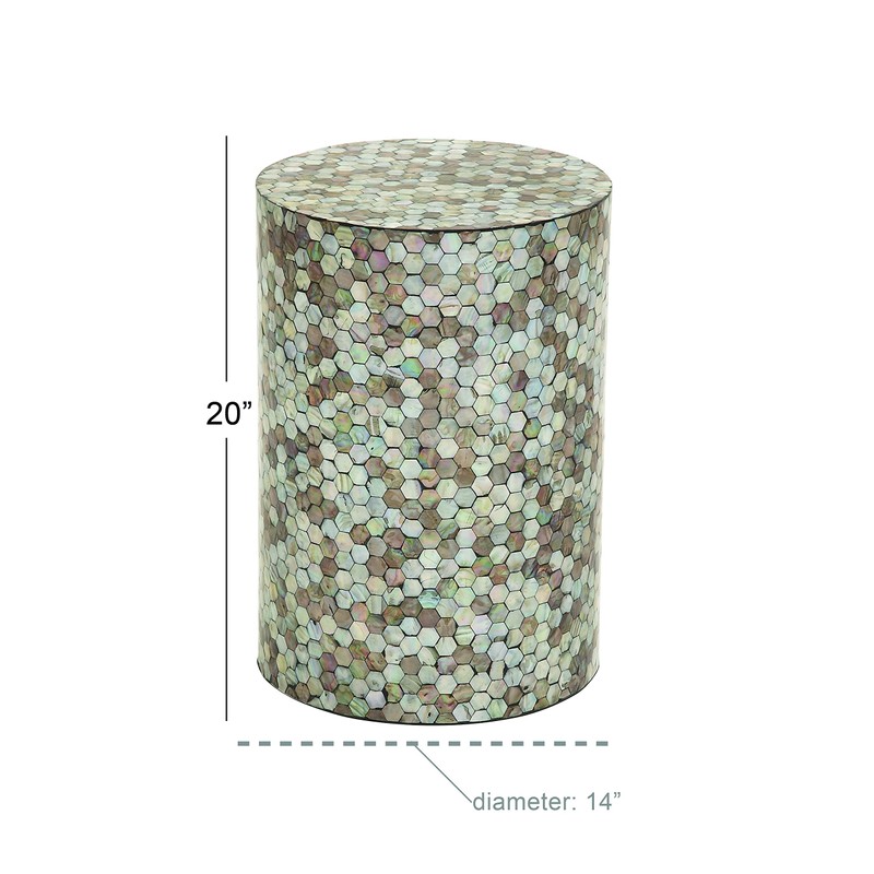 Deco 79 48985 Small Round End Table with Freshwater Pearl Mussel Shell Inlay, 14” x 20”