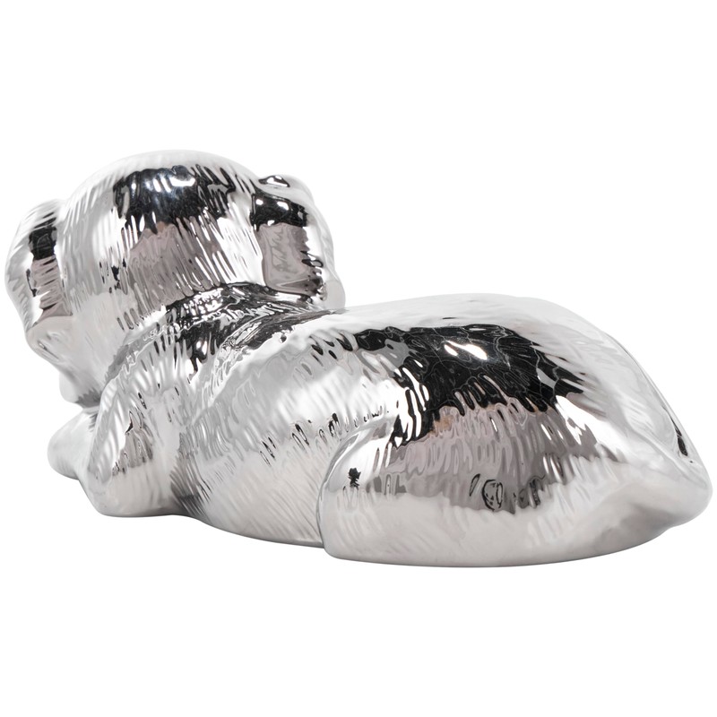 Deco 79 Ceramic Dog Decorative Sculpture Laying Home Decor Statue with Matte Finish, Accent Figurine 10" x 5" x 5", Silver