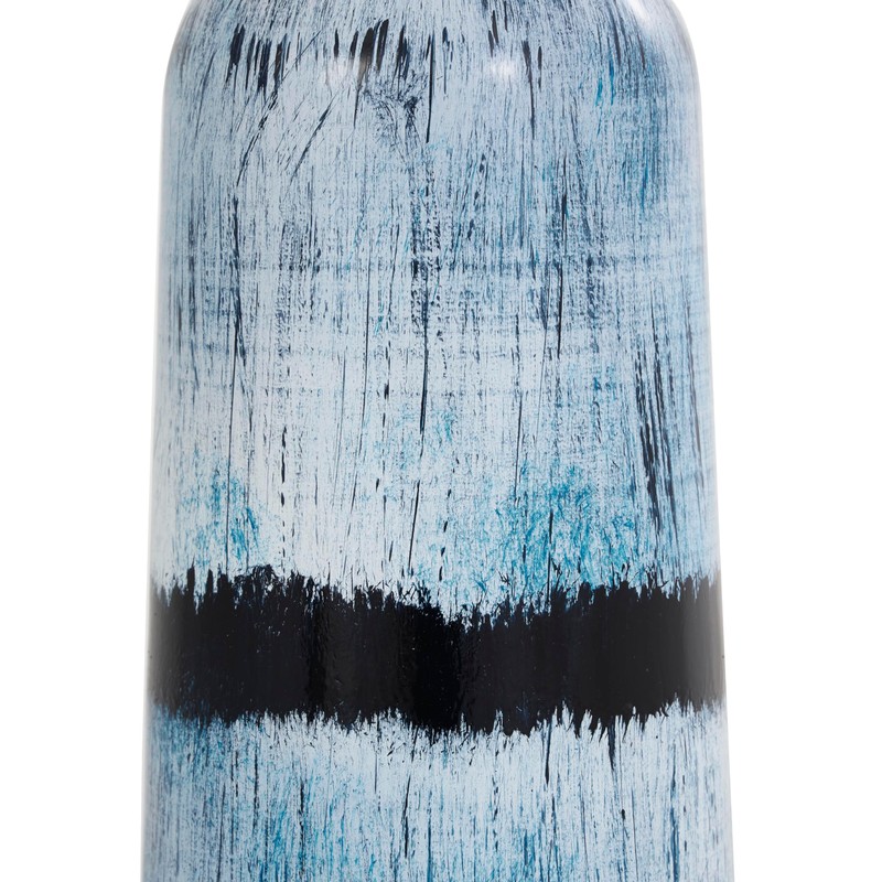 - BLUE AND DARK BLUE POLISHED FINISH This round accent lamp for living room boasts a polished blue glass finish with a white shade and abstract black and gold details for an artistic touch