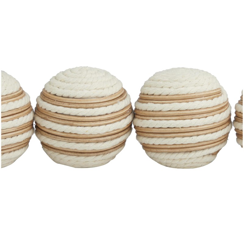 • WHITE AND LIGHT BROWN ORBS FOR DECORATION: Small orbs feature textured white ropes and brown rattan for a neutral design
