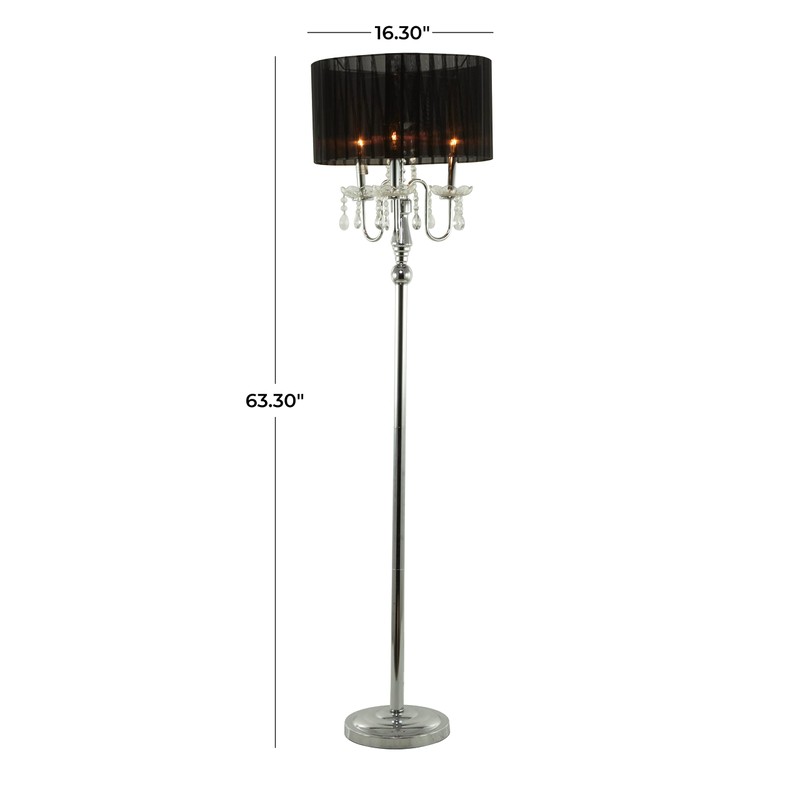 Deco 79 Metal Floor Lamp with Dangling Crystals, 16" x 16" x 63", Silver