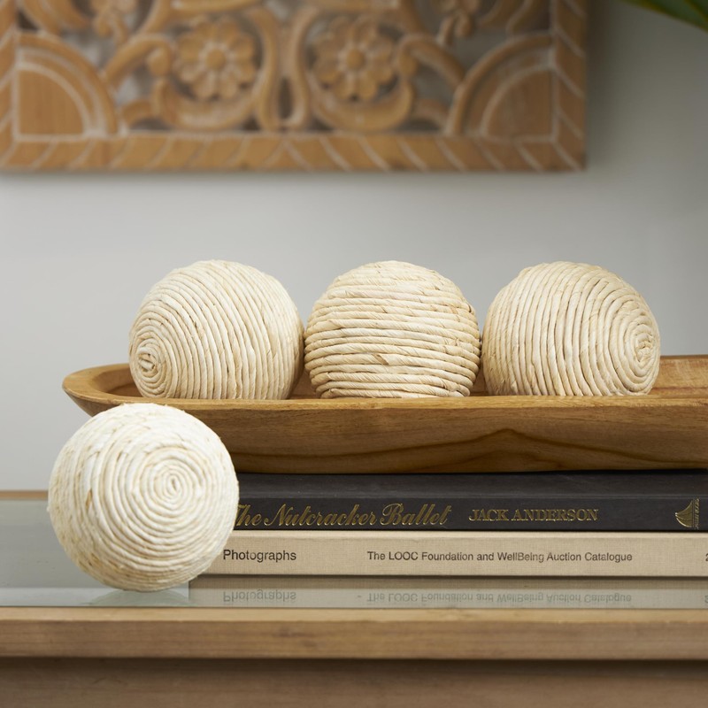 Deco 79 Orbs & Vase Filler, 4 Pieces Small Size, Beige