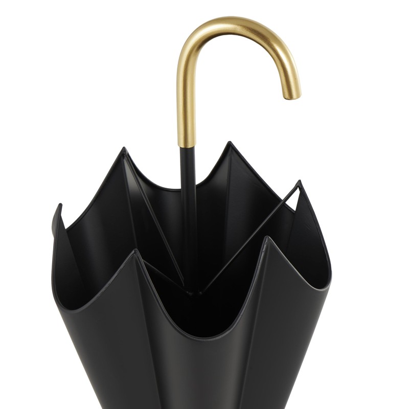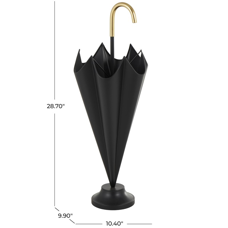 • BLACK AND GOLD MATTE FINISH: Round umbrella stand boasts a modern matte black finish with a gold handle, adding a sleek touch to any decor
