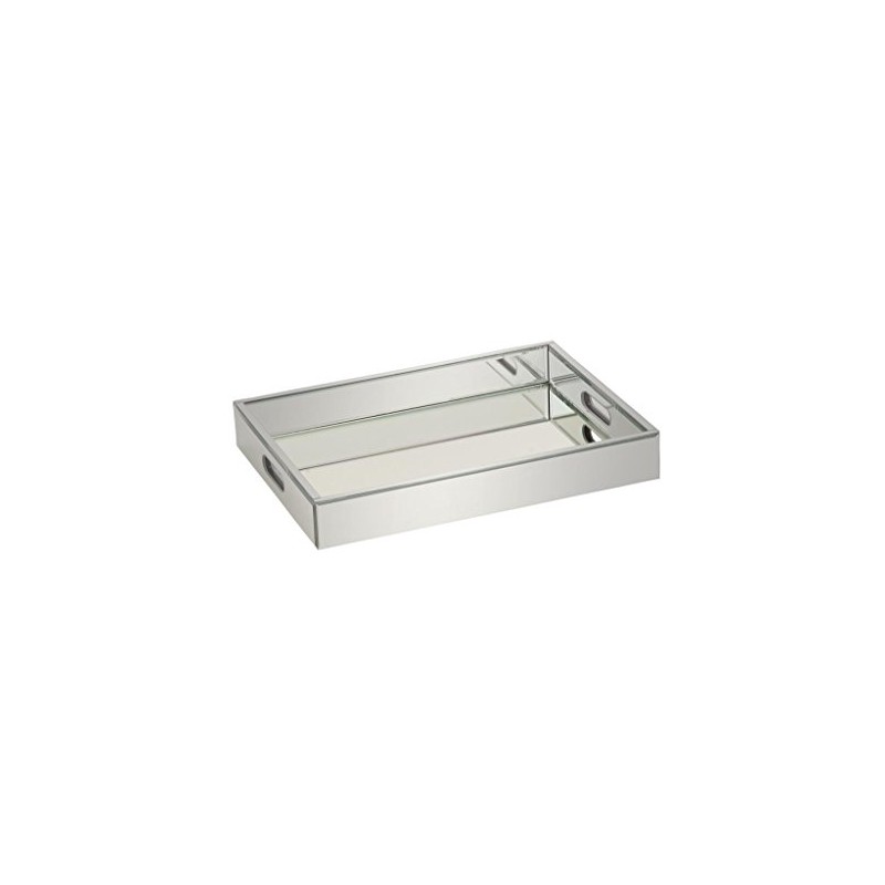 Deco 79 Wood Mirror Tray, 18 by 3-Inch, Silver