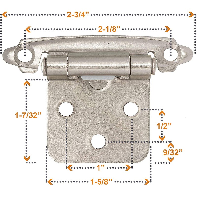 DecoBasics Polished Chrome Cabinet Hinges for Kitchen Cabinets (25 Pair -50 Pcs) -1/2" Overlay (Variable) -Self Closing Kitchen Cabinet Hinges Flush Mount w/Silicon Bumpers & Upgraded Screws