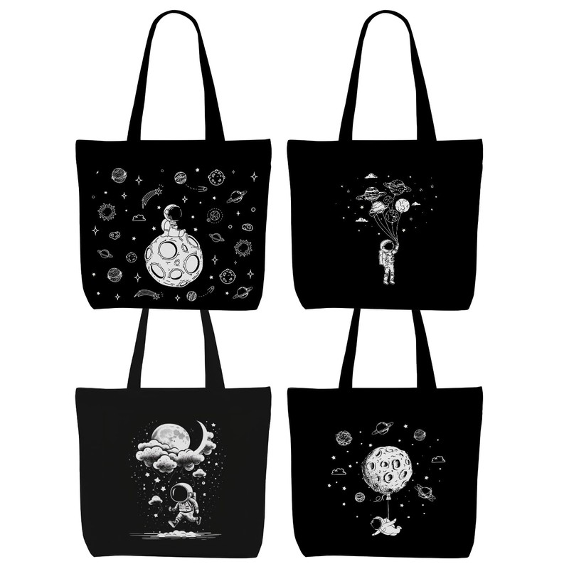 Decohim 4 PCS Cute Astronaut Moon Canvas Tote Bag Canvas Bag with Pocket for Shopping Work Gym Astronomy Gifts Large Reusable Grocery Bags Space Gifts for Women Friend Girls Sister Birthday Christmas