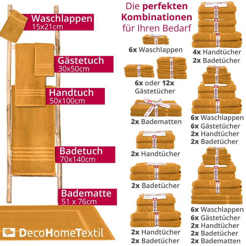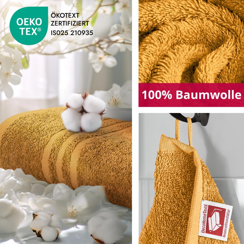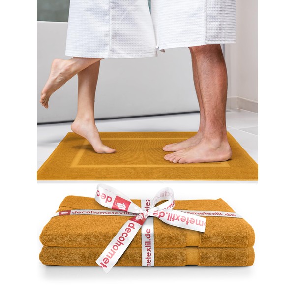 DecoHomeTextil Towel Set 2 Bath Mats in Mustard Made of 100% Cotton, High Quality, Cuddly Soft and Absorbent