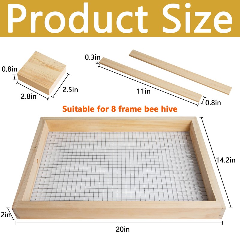 8 Frame Bee Hive Candy Board- Pine Wood Winter Candy Board for Beehive- Bee Candy Feeder Assembled for Hives Supplies (20 x 14.2 x 2 Inch)Package Include: 1 Pack x 8 Frame Bee Hive Candy BoardSpecification:Color: wood colorSize: 20 x 14.2 x 2 inchMaterial: pine woodFeatures:(1)In the cold winter when fresh nectar sources are reduced, it can provide bees with a reliable enough food supply and is an essential tool for beekeeping.(2)This 8 frame beehive candy board is the ideal gift for beekeepers to keep bees safe and enough food during the hungry winter months.(3)Note: Avoid opening the hive multiple times for feeding which can cause cold air to enter the hive.