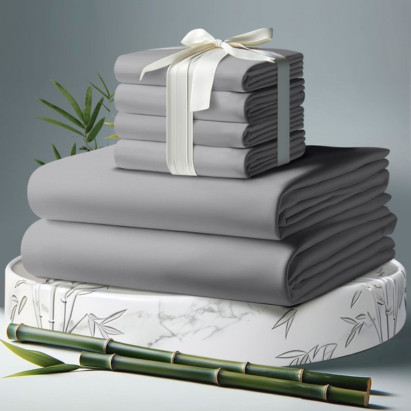 DECOLURE 100% Organic Viscose Derived from Bamboo Sheets King Size 6pcs - Ultra Soft & Luxuriously Cooling, 17" Deep Pocket, Double Stitching, Perfect for Hot Sleepers - King Bed Sheets (Midgrey)