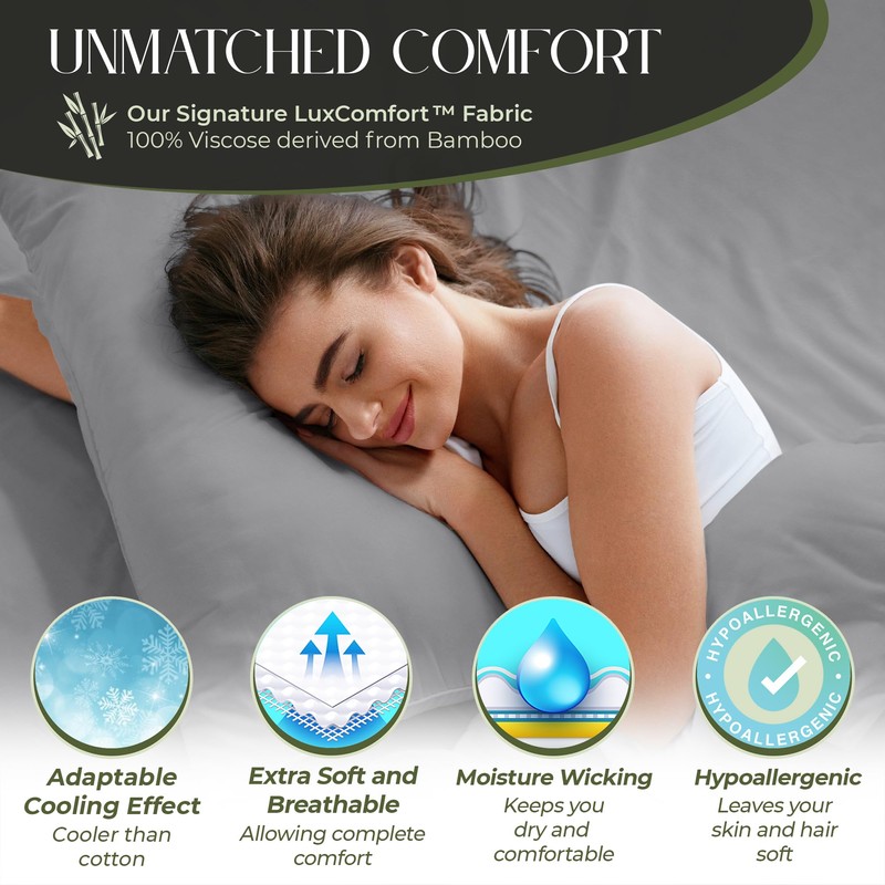 - UNMATCHED COMFORT & SOFTNESS: Our unique 100% viscose derived from bamboo sheets king size deliver an unparalleled softness and a smooth, luxurious texture. OEKO-Tex Certified viscose derived from bamboo bed sheets are silky-smooth & naturally hypoallergenic