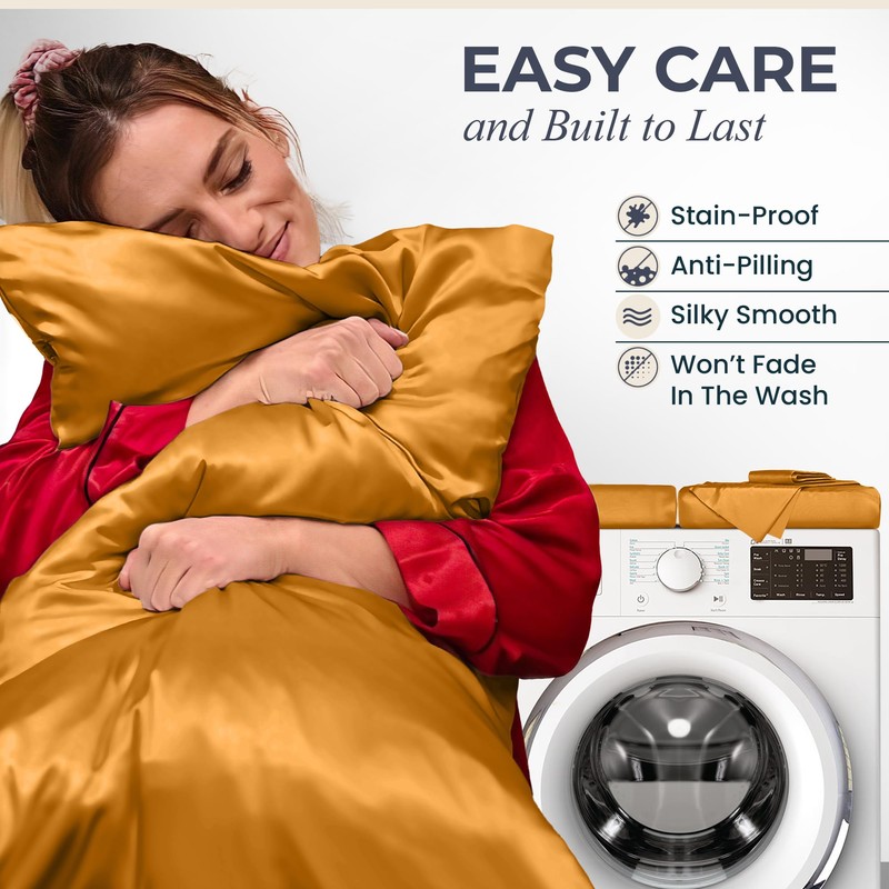 - Get More Bang for Your Buck With a Complete Set that includes 1 x fitted sheet, 1 x top sheet, and pillowcases (1 for the twin set, and 2 for the full, queen, and king size set). No need to worry about buying the top sheets and matching pillowcases separately. We have collected everything you need to upgrade your bedding in a convenient, budget-friendly, and elegant satin bedding set for every taste. Available in 4 sizes and 5 colors, our satin bedsheet set will cover all your needs.