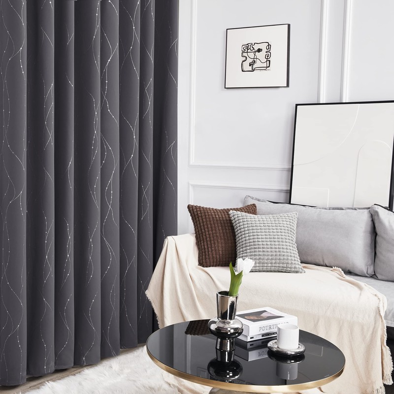 Deconovo Blackout Curtains Wave Line with Dots Foiled Printed Curtain