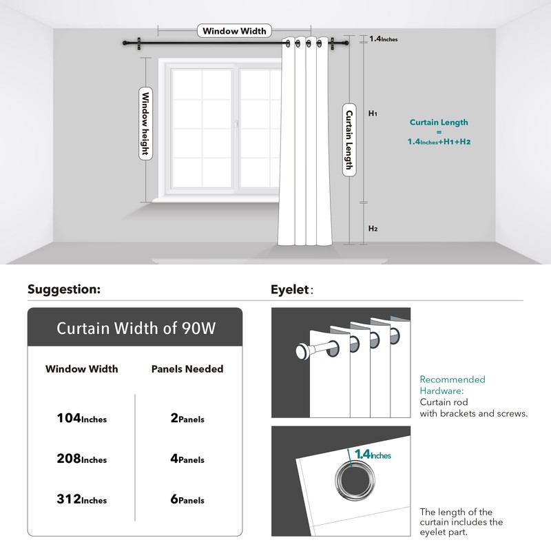 • READY MADE - 2 curtain panels per package, each panel measures 229 cm wide and 229 cm long, inner diameter of the each ring measures 4cm. Eyelet curtains are more convenient to assemble.