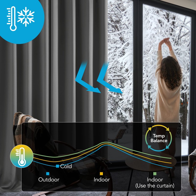 - This blackout curtain can also block out the outside noise and prevent curious glances, guarding your private space. It also keeps the room warm in winter and cool in summer, blocks bright light and reduces heat loss.