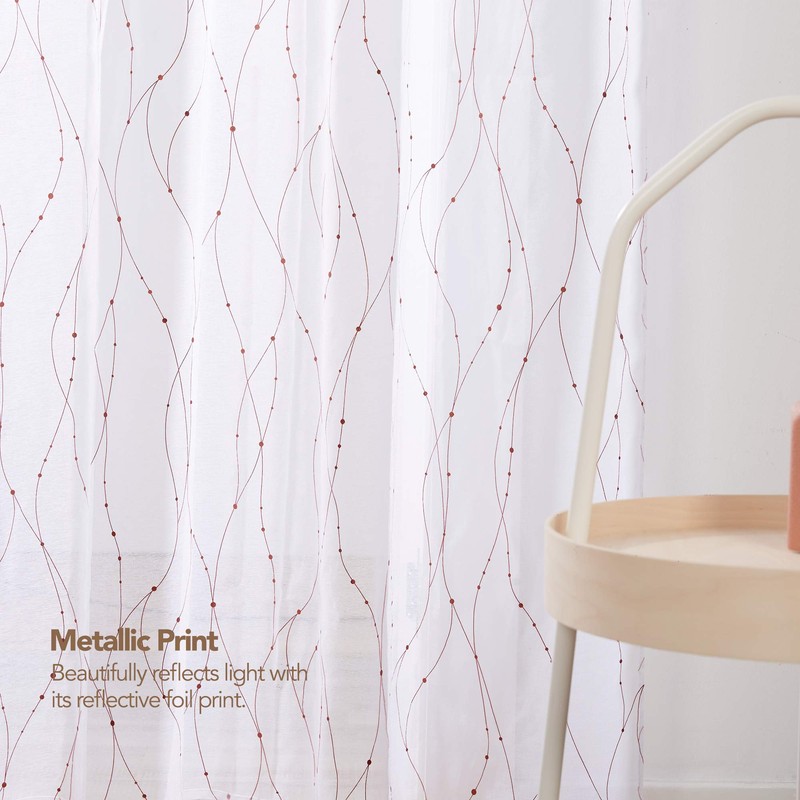 Deconovo White Sheer Curtains Grommet Top Dots Foil Printed Sheers Linen Look Window Voile Curtains for Living Room 52W x 108L Red Bronze 2 Panels