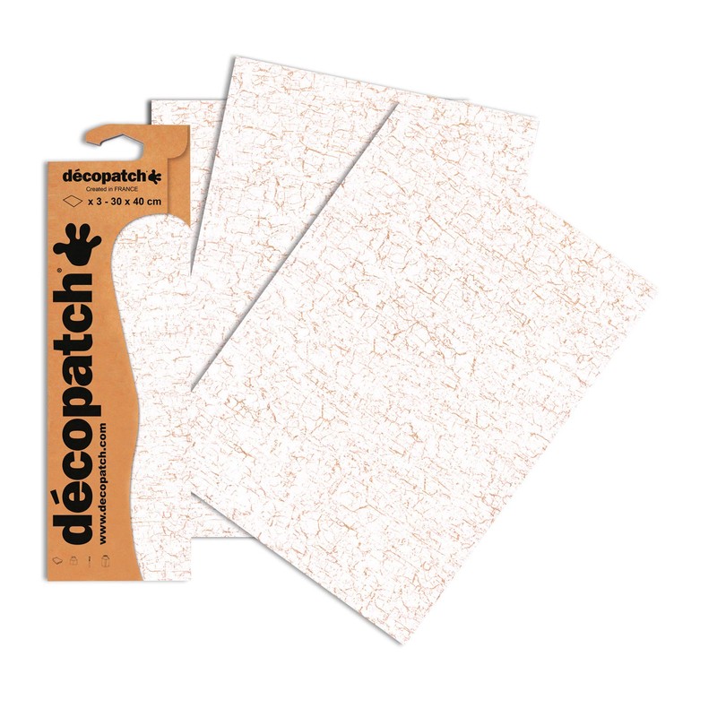 Décopatch - Ref C444O - White & Gold Cracked Effect Paper Pack - Each Sheet 30 x 40cm, Pack of 3 Paper Sheets - Best Used With Décopach Glue & Varnish, White & Gold