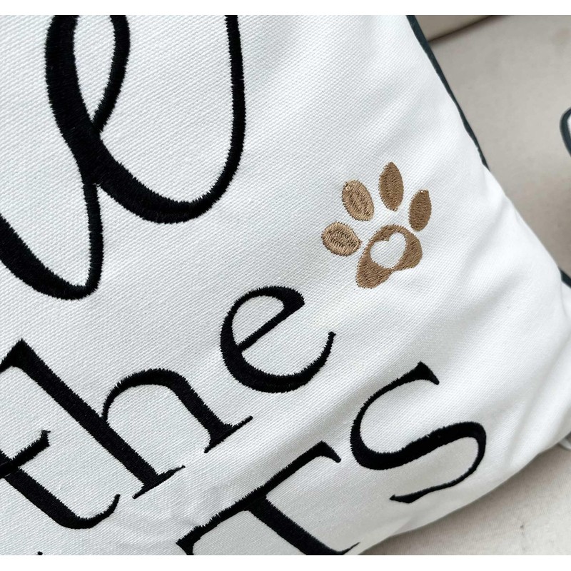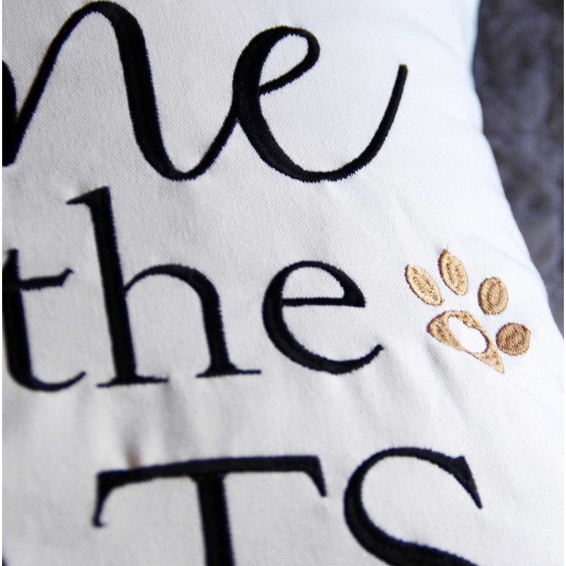 DECOPOW Embroidered Throw Pillow Cover,Square 18 inches Decorative Canvas Pillow Cover with You Me and The Cats,Cover Only