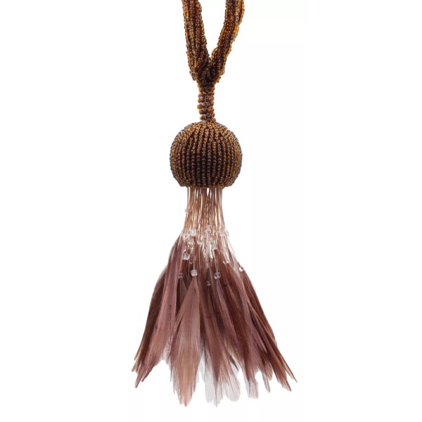- Beautiful Beaded Curtain Tassel Tieback Exquisitely Handcrafted with Exotic Feather Design, Tassel Length 5" (12.5cm), Spread 23" (58cm) # TBBDFEATH5, Mocha Brown #D2 (Dark Chocolate Brown) Sold Individually