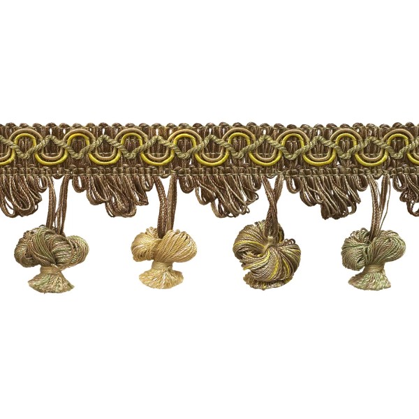 DÉCOPRO Beige Gold Green 2" Onion Tassel Fringe Trim Winter Prairie [5 Yards]
