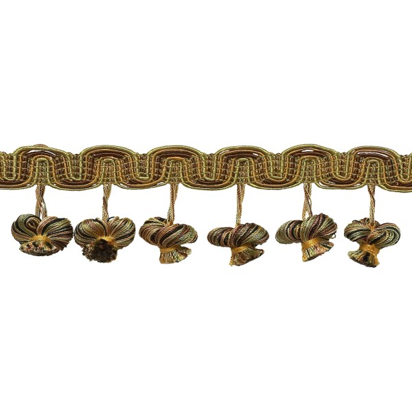 DÉCOPRO Gold Brown Green 2" Onion Tassel Fringe Trim Golden Chestnut [5 Yards]