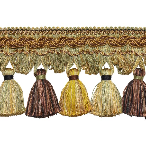 DÉCOPRO Gold Brown Green 4" Tassel Fringe Trim Golden Chestnut [By The Yard]
