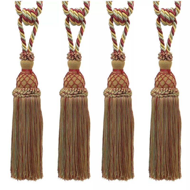 - Elegant Netted Curtain & Drapery Tassel Tieback, Tassel Length 10" (25cm), Spread 30" (76cm) # TBIN1, Holiday Red #3752 (Crimson Red, Light Gold, Mint Green) Set of 4