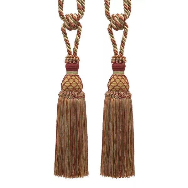 - Elegant Netted Curtain & Drapery Tassel Tieback, Tassel Length 10" (25cm), Spread 30" (76cm) # TBIN1, Cherry Grove Beige #4770 (Golden Beige, Rust Red, Olive Green) Set of 2