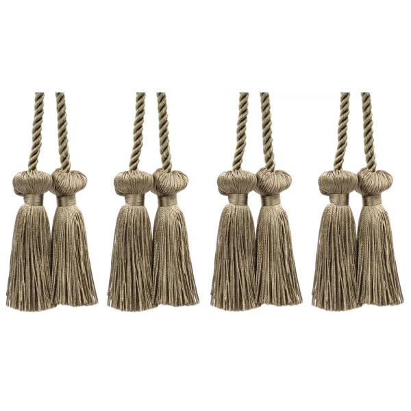 - Decorative Double Tassel Curtain and Drapery Tieback / Holdback, 3" Tassel (7.5cm), 27" Spread (68.5cm) # CCT,, Dark Sand Beige #A8 Set of 4
